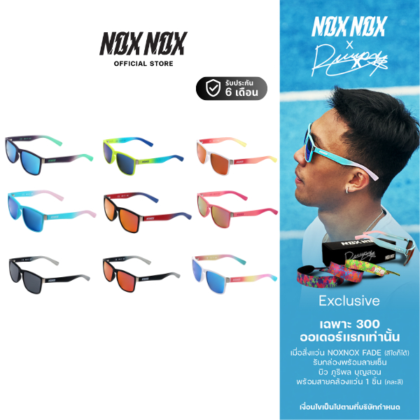 ... มทซ์กันได้อย่างลงตัวโดยเลือกใช้เทคโนโลยีใหม่ๆที่มาจาก ทั่วทั้งมุมโลก เพื่อตอบสนองการใช้งานของเหล่าผู้คนที่แตกต่างกันทั้งในด้านแฟชั่น กีฬาและไลลฟ์ สไตล์ได้อย่างลงตัว “เราคิดมาเสมอว่าทำไมเวลาเราซื้อแว่นกันแดดสักอันหนึ่งต้องรู้สึกว่าต้องซื้อของแพงๆมันถึงจะดี เราคงต้องเก็บเงินหลายเดือนว่าจะซื้อได้สักอันนึง แล้วเวลาใช้ก็คิดว่าอย่าใช้งานหนักเดี๋ยวพังเร็ว เดี๋ยวหายอีกต้องคอยระมัดระวัง เราอยากทำแว่นดีดีสักอันที่ไม่แพง มีคุณภาพเทียบกับระดับแบรนด์ ดังๆ เพื่อให้ทุกคนกล้าใส่แว่นกันแดดกันมากขึ้น ได้รู้จักถนอมสายตาโดยที่ไม่ต้องกังวลว่าคนอื่นจะมองเราว่าแอ๊ค” สรศักดิ์ เตชะธารวณิช , NOXNOX’s Brand Manager NOXNOX x BEW PURIPOL คือการคอลแลปที่น่าตื่นเต้นเป็นอย่างมากสำหรับเรา เพราะ“บิว” ภูริพล บุญสอน คือหนึ่งในผู้สร้างแรงบันดาลใจให้กับนักวิ่งชาวไทยและเยาวชนรุ่นใหม่หลายๆคนตลอดสามปีที่ผ่านมา ด้วยสถิติการเป็นเจ้าของเหรียญเงินวิ่ง 100 ม. รายการ WORLD ATHLETICS U20 CHAMPIONSHIP LIMAPERU ด้วยเวลาเพียง 10.22 วินาที โดยในการเลือกคอลแลปครั้งนี้ NOXNOX มีความตั้งใจในการเป็นส่วนหนึ่งของการส่งต่อแรงบันดาล NOXNOX RUN FADE ใจให้กับนักวิ่งอีกหลายๆคนเพื่อเป็นการตอกย้ำว่า “คนไทยก็วิ่งได้ใน เวทีระดับโลก” การคอลแลปกันในครั้งนี้จะมีสิ่งที่พิเศษสุดๆคือ การสั่งซื้อรุ่น NOXNOX RUN FADE จะมีลายเซ็นแบบสดๆของ บิวอยู่บนกล่องทุกกล่องพร้อมกับสายคล้องแว่นที่บิวและ NOXNOX ร่วมกันดีไซน์และจะมีแถมให้เฉพาะการสั่งซื้อช่วงเวลานี้เท่านั้นหมดแล้วหมดเลย โดยในส่วนของ NOXNOX RUN FADE คือรุ่นที่เราพัฒนาต่อยอดมาจากรุ่น RUN ซึ่งมีการปรับปรุงในด้านของน้ำหนักและวัสดุ เหมือนเป็นการอัพเกรดขึ้นมาอีกขั้นหนึ่ง โดยในส่วน ของตัวเฟรมเราเลือกใช้วัสดุที่มีชื่อว่า G850 ซึ่งเป็นวัสดุแบบ BIO-BASED ซึ่งเป็นวัสดุจากธรรมชาติซึ่งสามารถย่อยสลายได้เองตามธณรมชาติเป็นองค์ประกอบหลัก โดยมีคุณสมบัติ ให้ความยืดหยุ่นสูง น้ำหนักเบา ป้องกันแรงกระแทกได้ดี และป้องกันรังสี UV ได้สูงมากผสมกับตัวเลนส์ที่เราเลือกใช้เลนส์ TAC Polarized ซึ่งมีตัวกรองถึง 9 ชั้น ให้คุณสมบัติการ กันกระแทกสูง ให้ภาพคมชัด ป้องกันรังสี UV 400 ได้สูงถึง 99% และมีการลดการหักเหแสงได้เป็นอย่างดี ในส่วนของดีไซน์เรายังคงเน้นหลักการดีไซน์แบบ Asian Fit ให้เหมาะกับรูปหน้าคนเอเซียมากที่สุด ซึ่งจะแตกต่างจากแบรนด์แว่นสากลที่จะเน้นหลักโรงหน้าคนยุโรปหรืออเมริกา ท า ให้การสวมใส่อาจท าให้ไม่เข้ากับรูปหน้าคนไทยเป็นส่วนใหญ่ ดังนั้นเราจะเน้นหลักด้านนี้เป็นพิเศษผสมกับการออกแบบให้ตัวแว่นสามารถ