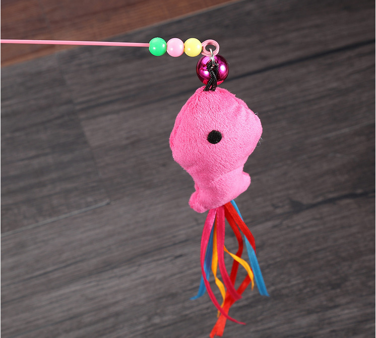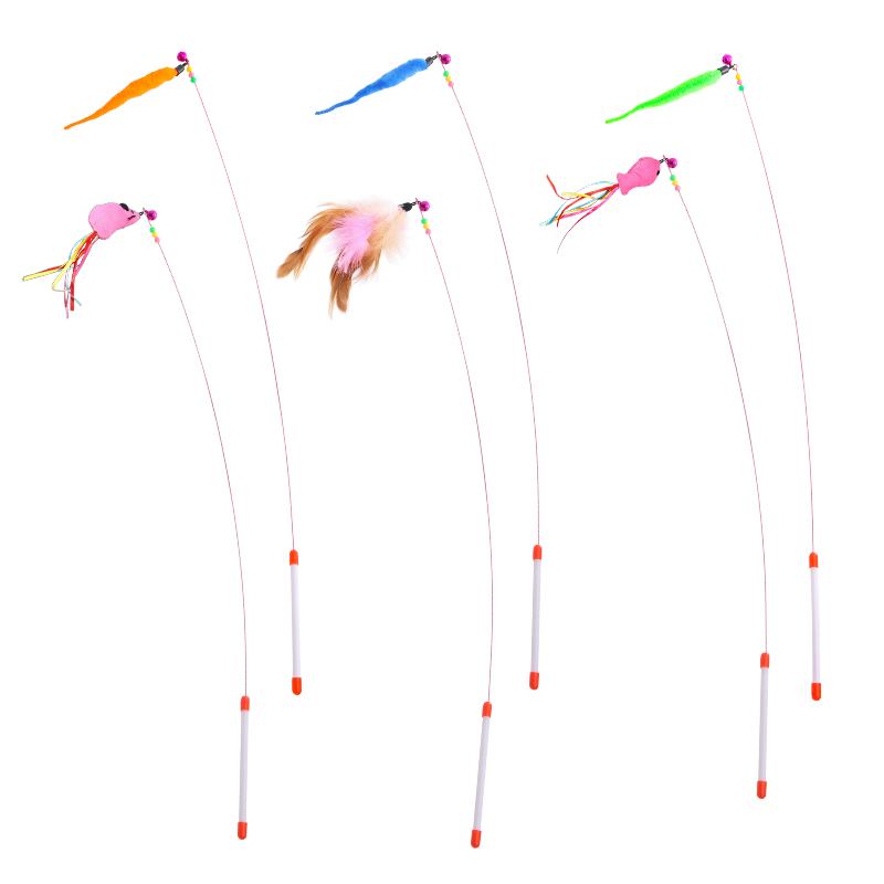 ลวดเหล็กแถบสี Caterpillar ขนนกปลาที่มีสีสันและรูปร่างอื่นๆ Super Elastic Cat Teasing Stick พร้อม Bells Self-Happy Relieving Bor