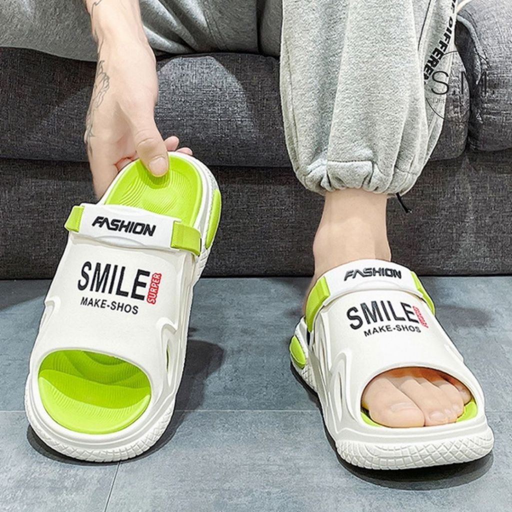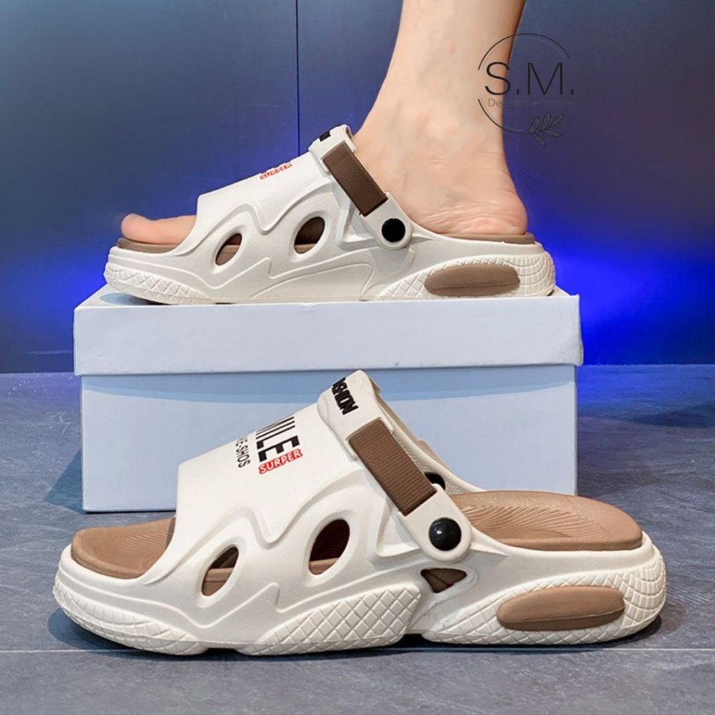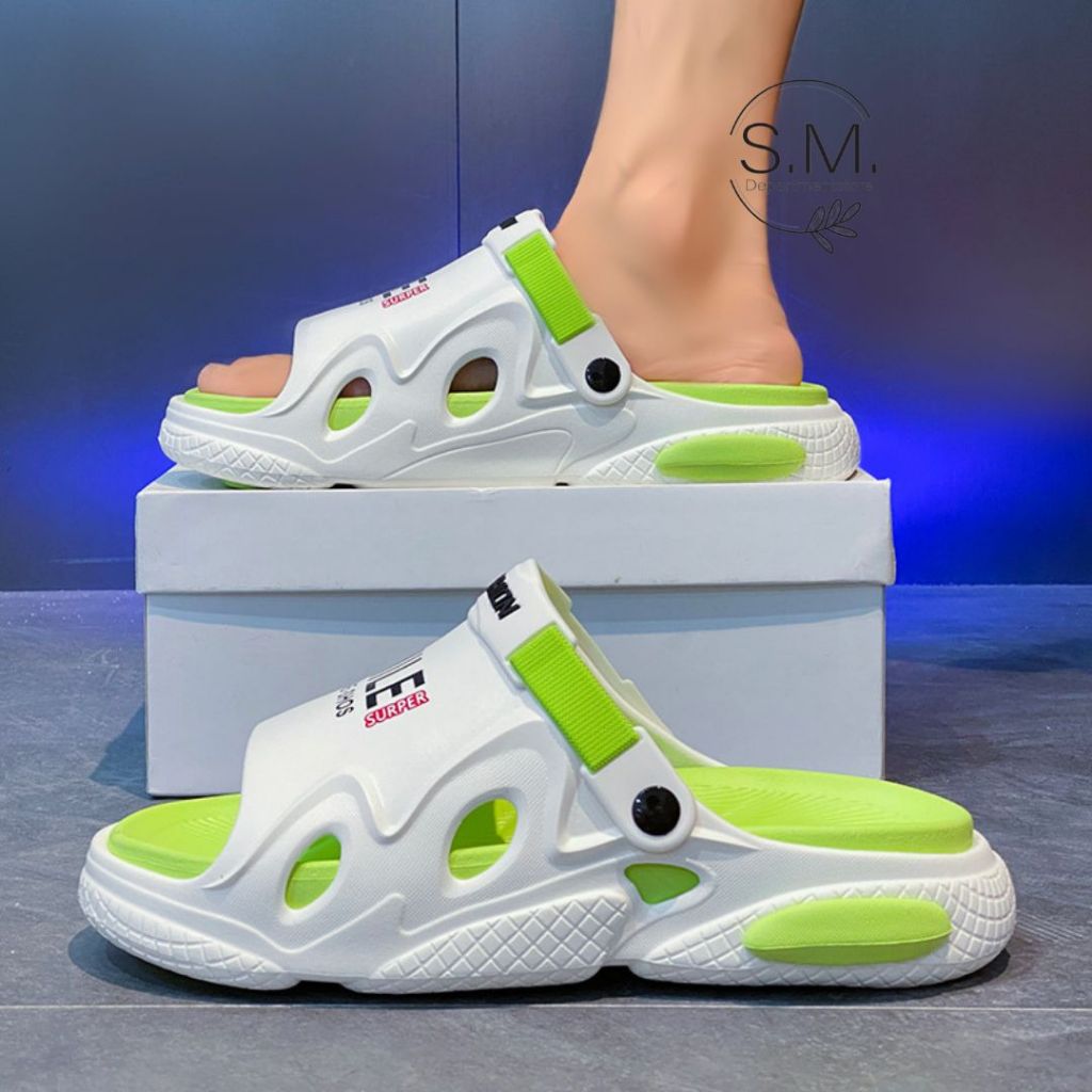 S.M.รองเท้าแตะแบบสวมเหมาะสำหรับผู้ชาย พื้นนิ่ม มีรัดส้น เบา ใส่สบาย