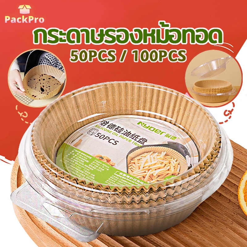 กระดาษรองหม้อทอดไร้น้ำมัน แบบใช้แล้วทิ้ง (แพ็ค 50/100ชิ้น) กระดาษรองอบ กันติด กันน้ำ ซับน้ำมัน เกรดอาหาร PackPro