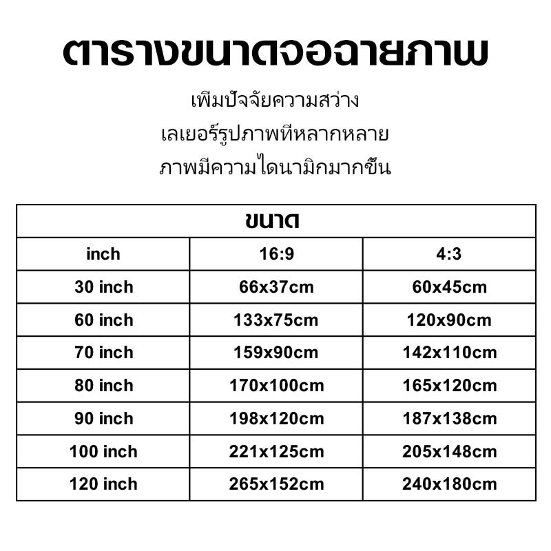 ... 84นิ้ว/100นิ้ว ✨คุณสมบัติ: 1️⃣สีสันสดใสและหน้าจอขนาดใหญ่ หน้าจอโปรเจ็กเตอร์ของเรากระจายแสงที่ฉายอย่างสม่ำเสมอ คุณจะได้สัมผัสกับความเพลิดเพลินในการรับชมภาพที่สมบูรณ์แบบด้วยการสร้างภาพและสีที่ดีที่สุด 2️⃣ผ้ากันรอยยับ สามารถติดบนผนังได้โดยไม่ทำให้ผนังเสียหาย และรูปทรงเป็นสี่เหลี่ยมไม่มีรอยพับ รองรับการซักมือและการรีดผ้าด้วยอุณหภูมิต่ำ 3️⃣ชมภาพยนตร์ภาพยนตร์ทุกที่ทุกเวลา สามารถพับเก็บได้เล็กมาก ไม่กินพื้นที่ และพกพาสะดวก ง่ายต่อการขนส่งและจัดเตรียมสำหรับการเดินทาง เหมาะสำหรับหลายโอกาส ⚠️ความสนใจ: โปรดใส่ใจ💖💖 - กรุณาตรวจสอบโดยเร็วที่สุดหลังจากได้รับสินค้า - หากมีข้อบกพร่องที่ขาดหายไป/จากการผลิต โปรดติดต่อฝ่ายบริการลูกค้าของเรา เราจะตอบกลับโดยเร็วที่สุดและจัดหาวิธีแก้ปัญหาที่เหมาะสมให้กับคุณ 💖💖สุดท้ายนี้ขอให้ทุกท่านมีชีวิตที่มีความสุข