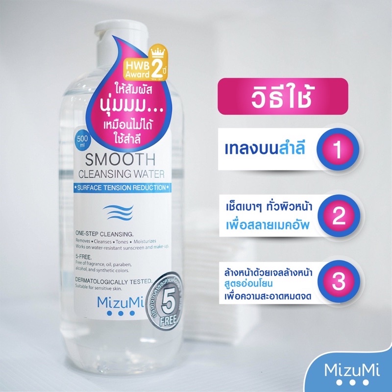 [เก็บโค้ด VDO] มิซึมิ คลีนซิ่ง วอเตอร์ Mizumi cleansing 500ml ใหญ่ Smooth Cleansing Water เช็ดเครื่องสำอาง มิซูมิ