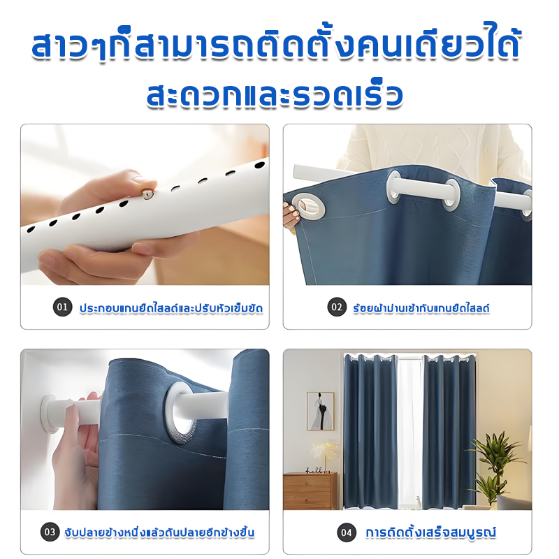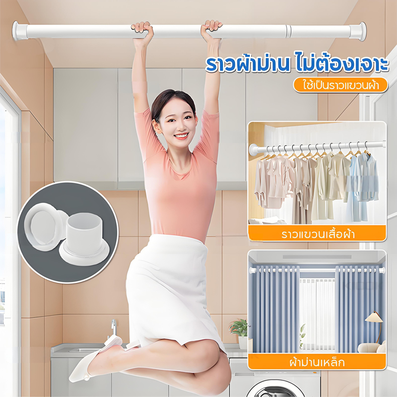 🔥ติดตั้งใน3วิ🔥ราวผ้าม่าน ราวม่าน ราวผ้าม่านไม่ต้องเจาะ ที่แขวนผ้า นอเนกประสงค์ ปรับความยาวได้ ราวม่านห้องน้ำ ราวตากผ้