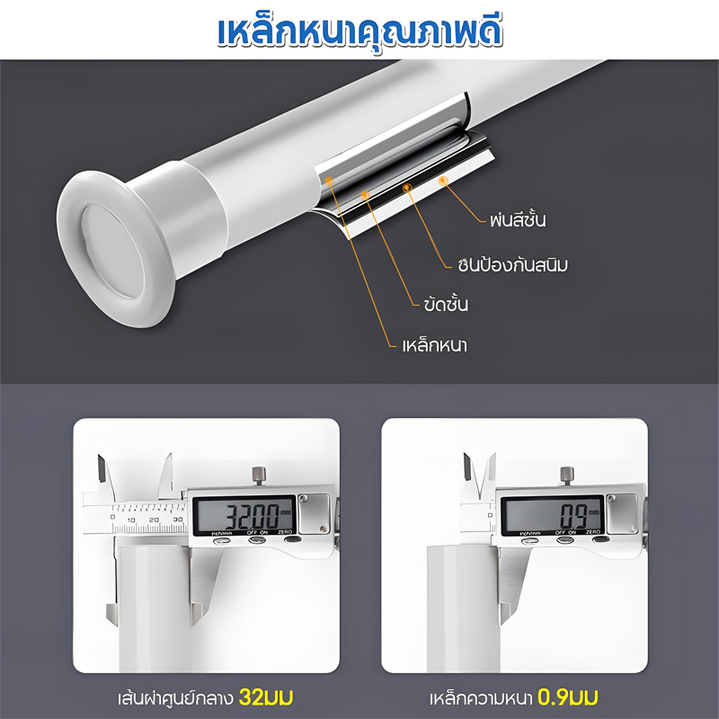 ... ตั้งได้ทุกพื้นที่ที่ต้องการ ยึดติดกับผนังได้ทุกพื้นผิว (ยกเว้นพื้นที่ที่มีความหนาแน่นน้อย เช่น PVC / ไฟเบอร์ / อลูมิเนียมบาง เป็นต้น) ราวแขวนสเตนเลส : มี 5ขนาด คือ 1.1-1.6m /2.1-2.6m / 2.6-3.1m / 3.1m-3.6m / 3.6-4.1m สี:สีขาว/สีดำ เลือกได้2สี ❤ทำจากสแตนเลสเกรด 304 ❤ ระบบสูญญากาศติดผนัง ติดตั้งง่าย ไม่ต้องใช้กาว ❤มีฐานกลมจับถนัดมือ ใช้ได้กับทุกพื้นผิว ❤ราวไร้ตะเข็บตรงกลางช่วยให้ม่านเคลื่อนตัวได้ง่ายไม่มีสะดุด ❤ ใช้งานได้หลากหลาย เช่น ผ้าม่านห้องน้ำ ผ้าม่าน ผ้าขนหนู ราวแขวนผ้า ⚠ ติดตั้งได้ทุกที่และติดได้ทุกพื้นผิวของผนัง (ยกเว้นบริเวณที่มีความหนาแน่นต่ำ เช่น PVC/ไฟเบอร์/อลูมิเนียมแบบบาง)