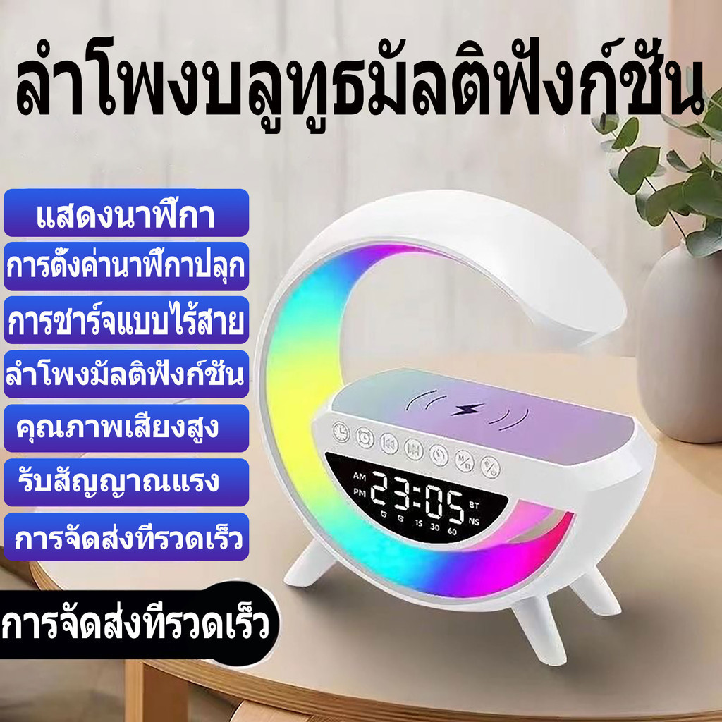ลำโพงบลูทูธ 3in1 รุ่น มาพร้อมกับ แท่นชาร์จไร้สายในตัว และมี Led Lamp กับนาฬิกาด้วย Wireless Charging ลำโพง ลำโพงบลูทูธ