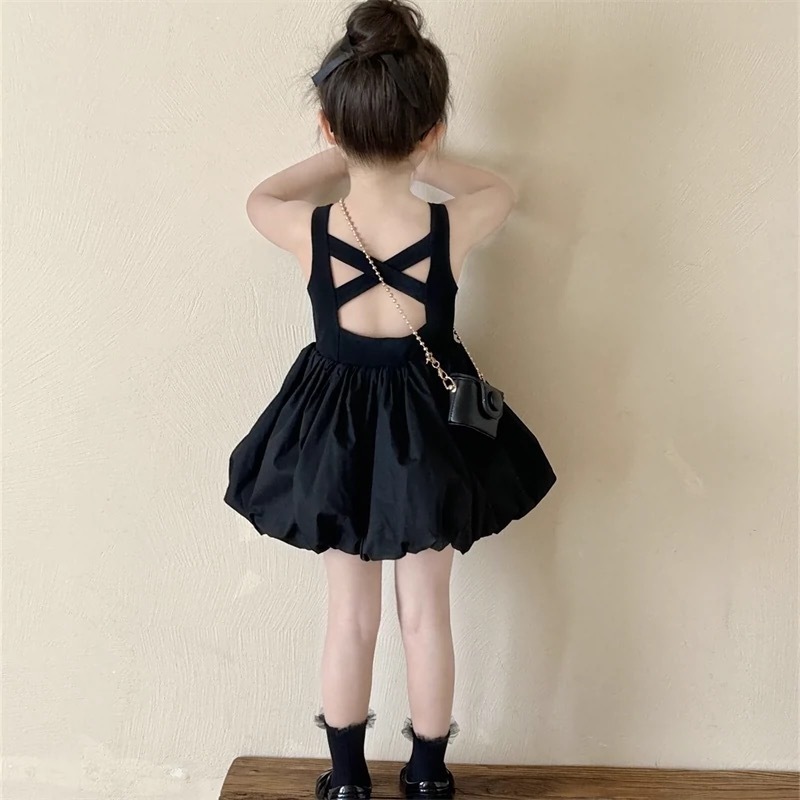 Babyonline(Y248)G1 ชุดเดรสสายเดี่ยวกระโปรงทรงบอลลูนโชว์หลังสำหรับเด็กผู้หญิง ผ้าฝ้าย นิ่ม
