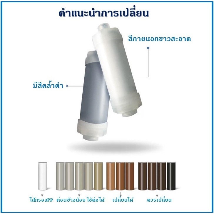 ... ับฝุ่น PM10 ขนาด10 ไมครอน กรองกลิ่นคลอรีน / ละอองสนิมในน้ำ / ตะกรันในน้ำ คราบ สิ่งสกปรก จากแท็งค์เก็บน้ำ ท่อน้ำประปา กรองสิ่งเจือปนจากน้ำ กรองตะกอนในน้ำทำให้ได้น้ำใสบริสุทธิ์ ติดตั้งง่าย เพียงหมุนต่อกับฝักบัว ลดปัญหาสิ่งสกปรก ที่ทำให้เกิดปัญหา สิวที่หน้า หรือที่หลัง สามารถถอดแยก ซื้อแต่ฟิวเตอร์ เปลี่ยนได้ กรองคลอรีนกับกรองธรรมดา ใช้เปลี่ยนทดแทนกันได้ ขนาดฟิลเตอร์เท่ากัน ไส้กรองขนาดสูง 10 เส้นผ้าศูนย์กลาง 3.5 cm กรองธรรมดา ช่วยกรองสิ่งสกปรก แบคทีเรีย เชื้อโรค สนิม กรองคลอรีน จะช่วยกรองทั้งสิ่งสกปรกแบคทีเรีย เชื้อโรค สนิม และกลิ่นค่ะ สองรุ่นนี้ทั้งไส้กรองและตัวกรอง มีขนาดเท่ากัน สามารถสลับใช้ร่วมกันได้ แนะนำให้เปลี่ยนทุกๆ 60 - 90 วัน ( ขึ้นกับสภาพน้ำของแต่ละพื้นที่ ) และสังเกตุสีของไส้กรองที่เปลี่ยนไป สีเข้มขึ้นจากการกรอง อุณหภูมืที่เหมาะสม 0-60 องศา ต่อวาลว์กับก๊อกน้ำดีขนาด 1/2 นิ้ว หรือ 4 หุน ------------------------------------------- Classy2Home รับประกันคุณภาพสินค้าทุกชิ้น สินค้ามีปัญหา ไม่พอใจ ร้านเรา เปลี่ยนของใหม่ให้ หรือคืนเงินให้ค่ะ สินค้ามีปัญหาลูกค้าสามารถทักแชทได้เลยค่ะ