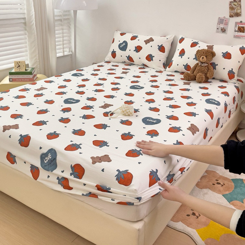ผ้าปูที่นอนลายดอกไม้ ผ้านิ่ม สีไม่ตก ไม่เป็นขุย มียางรัดมุม4มุม งานไทย พร้อมส่ง