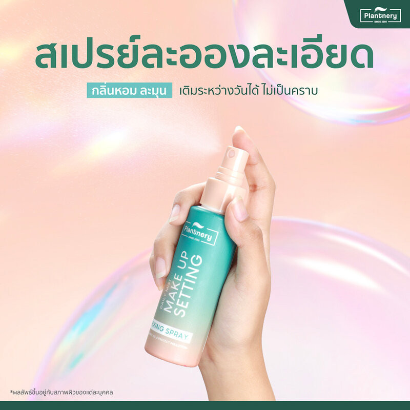 Plantnery Daily Setting Mist Fixing Spray 60mlสเปรย์ล็อคเมคอัพเนื้อบางเบา ไม่หนักหน้า ช่วยเซทเมคอัพให้ติดทนนาน และช่วยบำรุงผิวด้วยส่วนผสมของน้ำจากดอกกุหลาบ, สารสกัดแตงกวา, สารสกัดคาร์โมมาย, สารสกัด CICA และสารให้ความชุ่มชื้น HYALURONATE 8 อนุพันธ์ เนื่องจากเนื้อที่บางเบา จึงสามารถฉีดซ้ำระหว่างวันได้