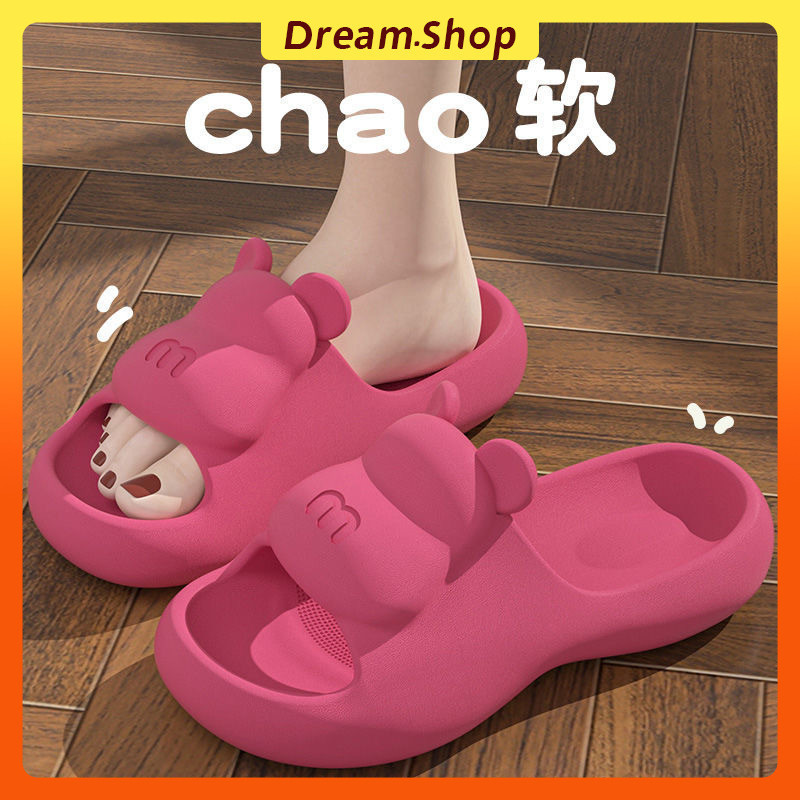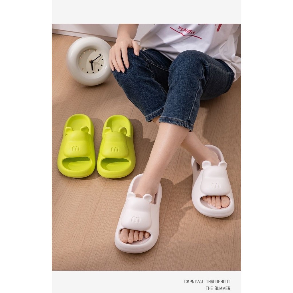 「DR」 รองเท้าแตะสีทึบรองเท้าแตะหมีอินเทรนด์แฟชั่นสบายระบายอากาศบ้านในร่มห้องน้ําอาบน้ําฤดูร้อนสไตล์ใหม่สบายๆทุกการแข่งขันกันลื่นสวมทนevaคู่ 36-45