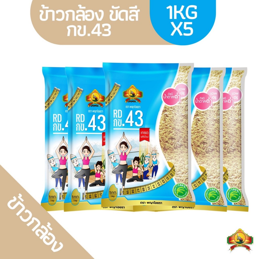 ซื้อในไลฟ์ลด 100.- (แพ็ก5ถุง)(ส่งฟรี) ข้าวกล้อง กข.43 ขนาด 1KG ตราพญาไอยรา