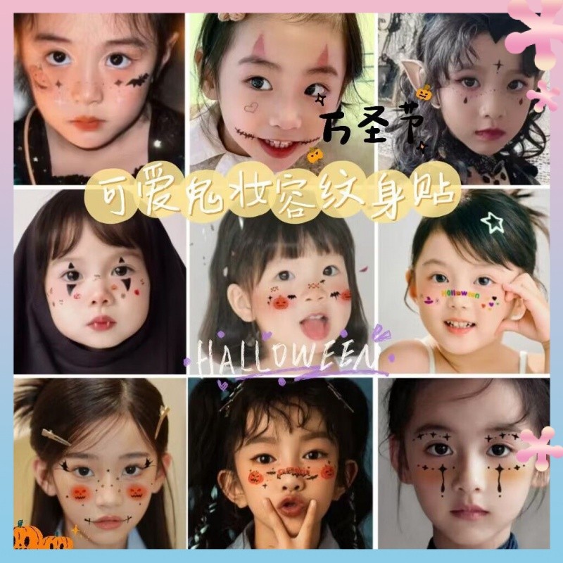 Halloween Tattoo Sticker Children's Cartoon Makeup Face Cute Pumpkin Ghost Skull Waterproof Christmas Stickers