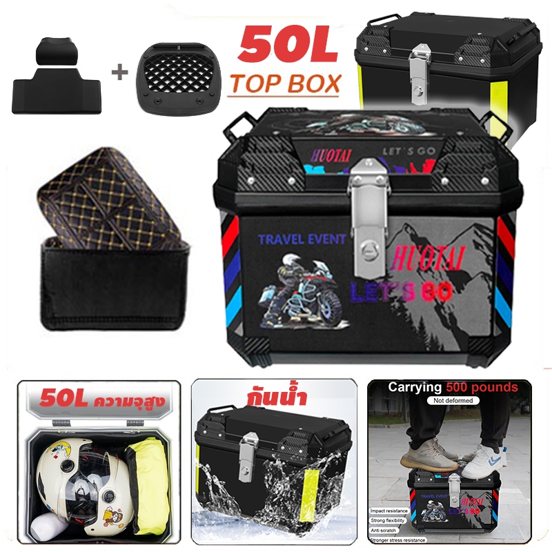 กล่องเก็บของในรถรถจักรยานยนต์ กล่องอลูมิเนียมอัลลอยด์ 50 ลิตร ลิตร พร้อมฐาน สําหรับรถจักรยานยนต์