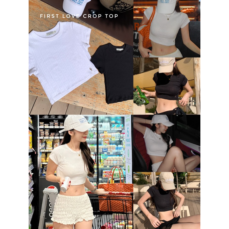 First love crop top 490.- เสื้อครอปเนื้อผ้าCotton100% ผ้านุ่มยืดใส่สบาย แต่งลายรูปหัวใจน่ารักมาก