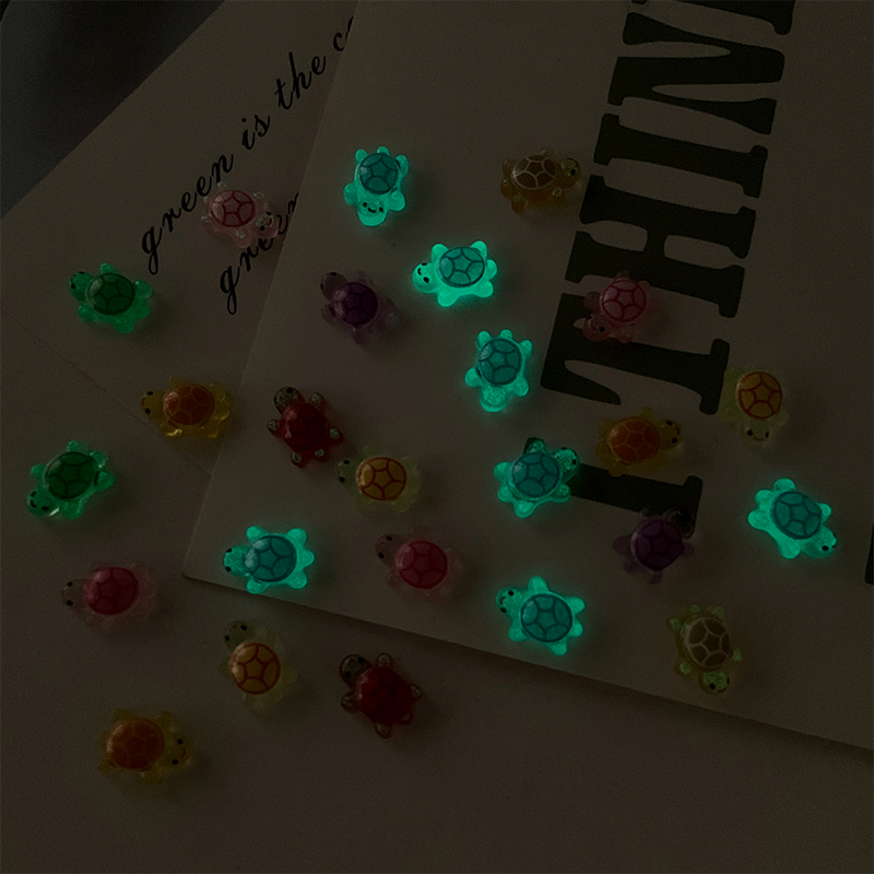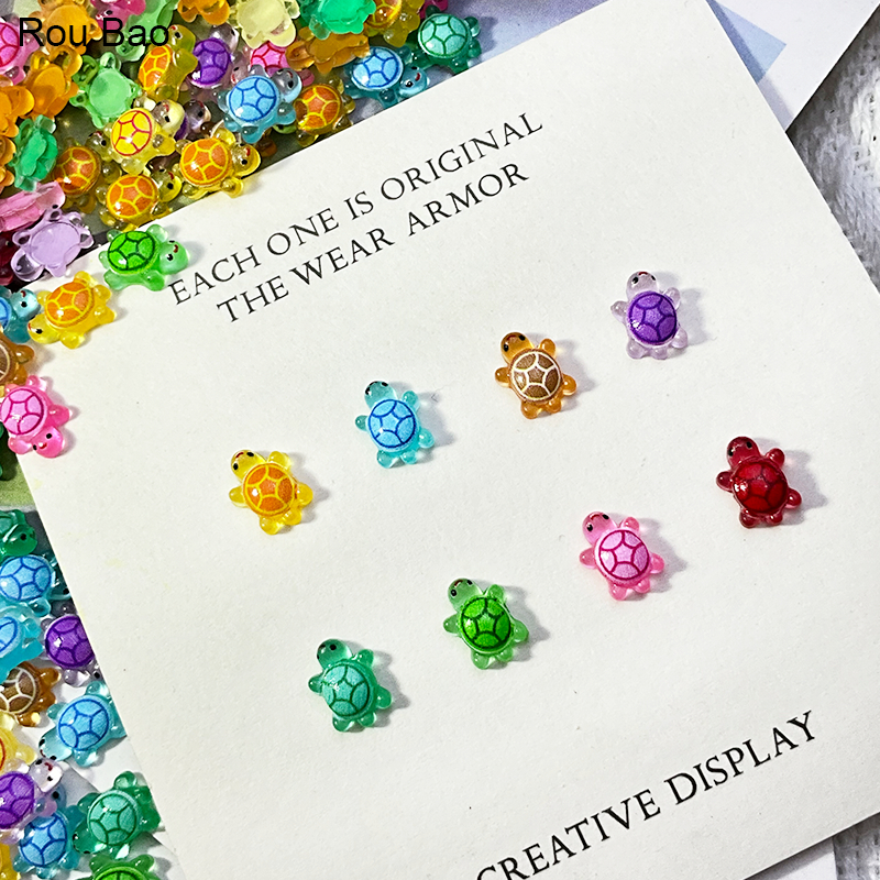 Rou Bao 50 ชิ้นเล็บมินิเต่า Noctilucent สีสันน่ารักการ์ตูนเรซิ่นเล็บ Art DIY Charms ตกแต่ง
