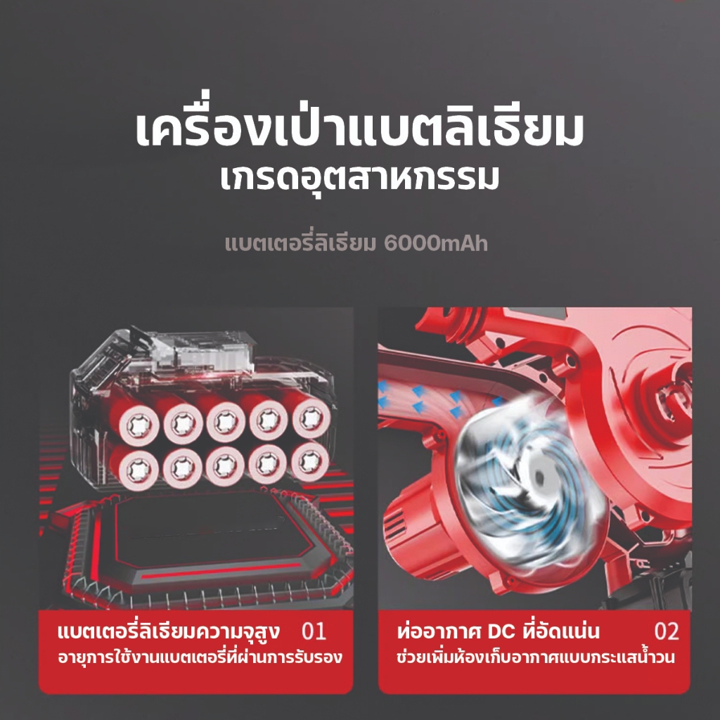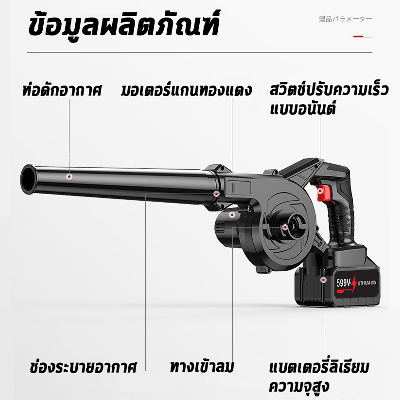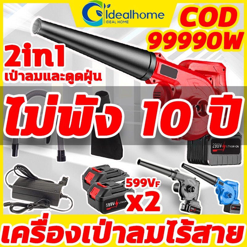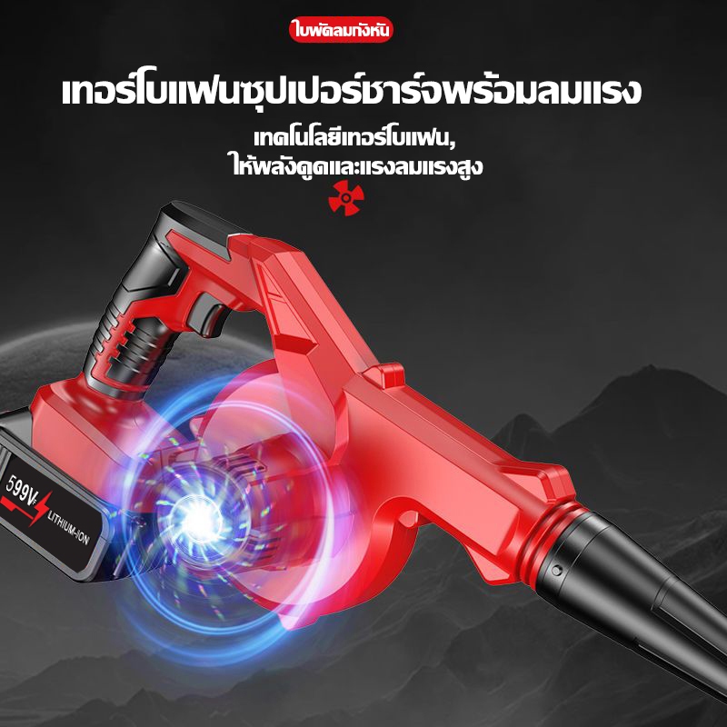 เครื่องเป่าลมไร้สาย 99990W เครื่องเป่าลม 2in1(เป่าลม-ดูดฝุ่น) ลมแรงเป็นพิเศษ แบตเตอรี่ 2 ก้อน เครื่องเป่าลมไฟฟ้า Blower