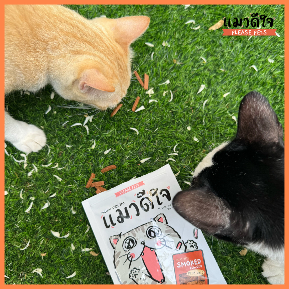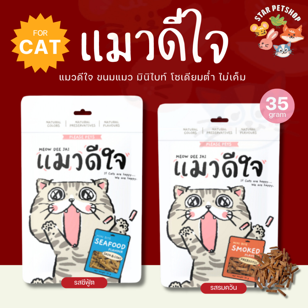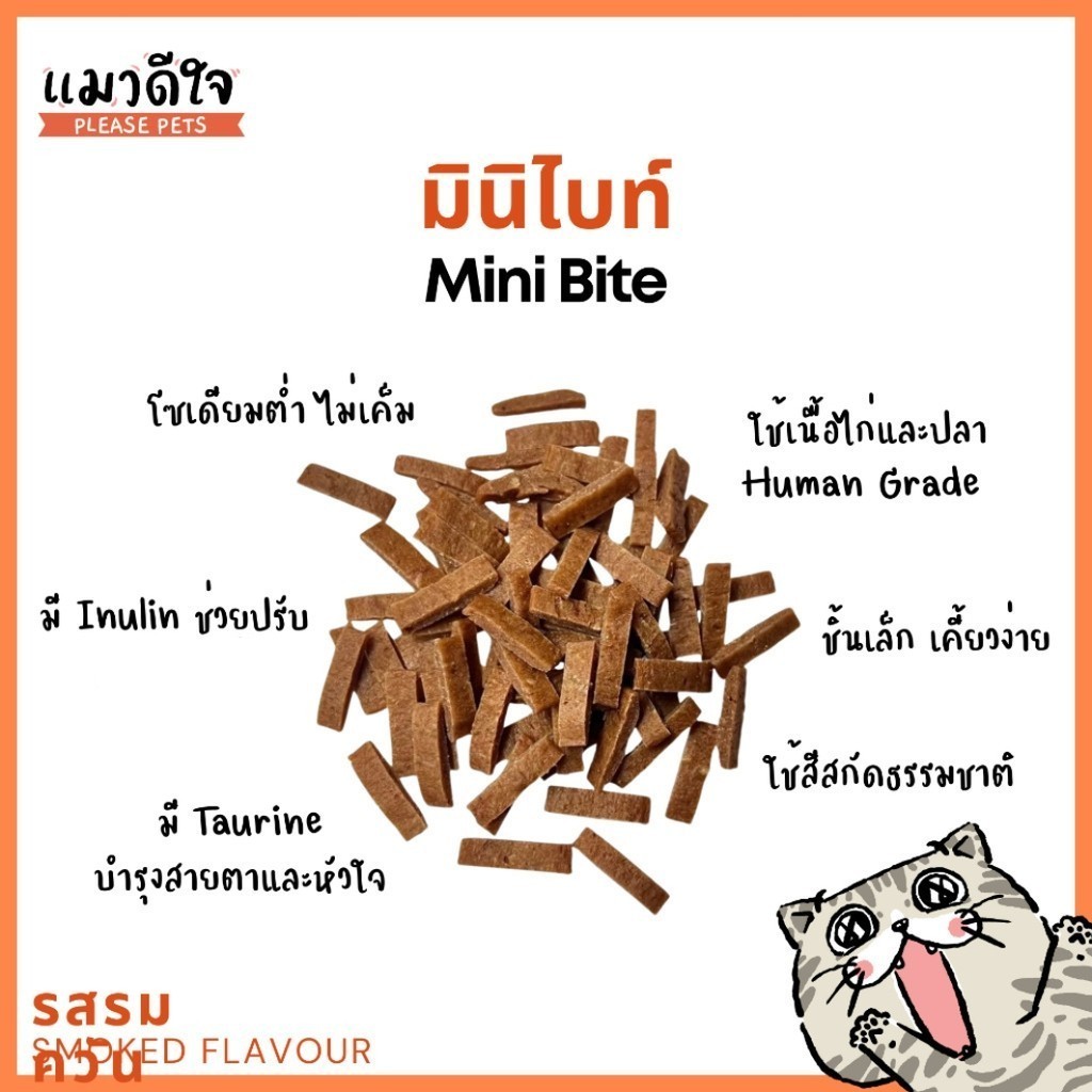 Meow dee jai Mini Bite Stick แมวดีใจ ขนมแมว มินิไบท์แมวดีใจ มินิไบท์ รสรมควัน และรสซีฟู้ต ขนาด 35g
