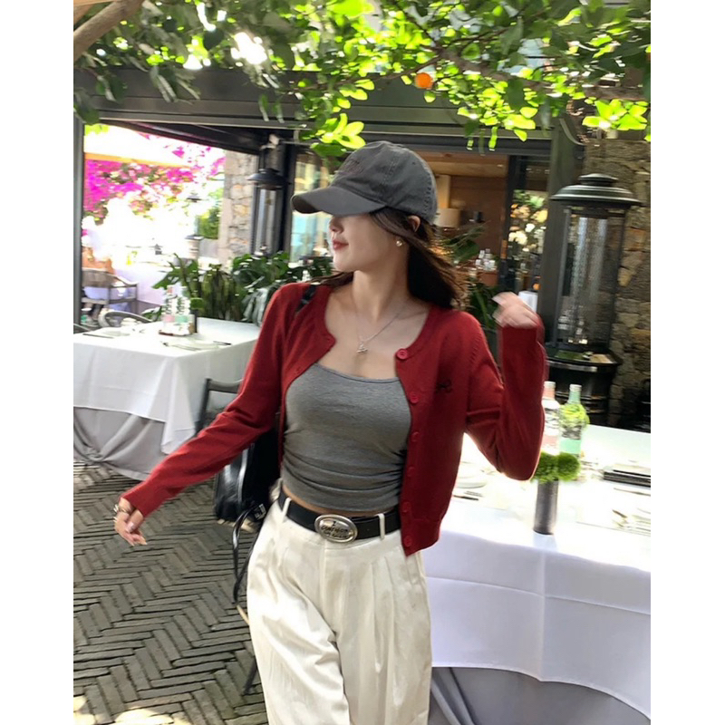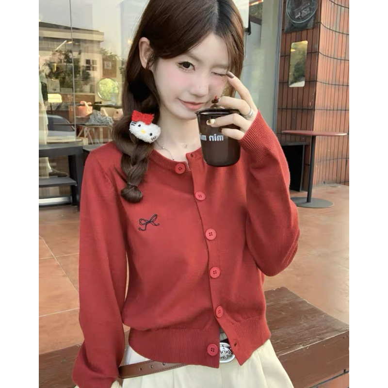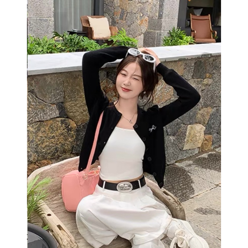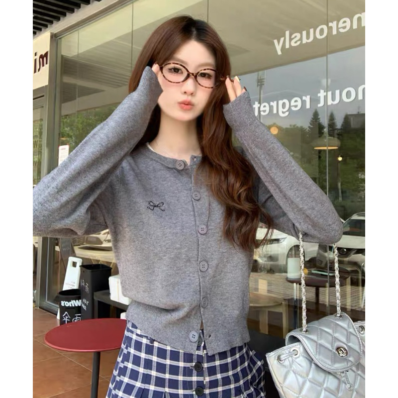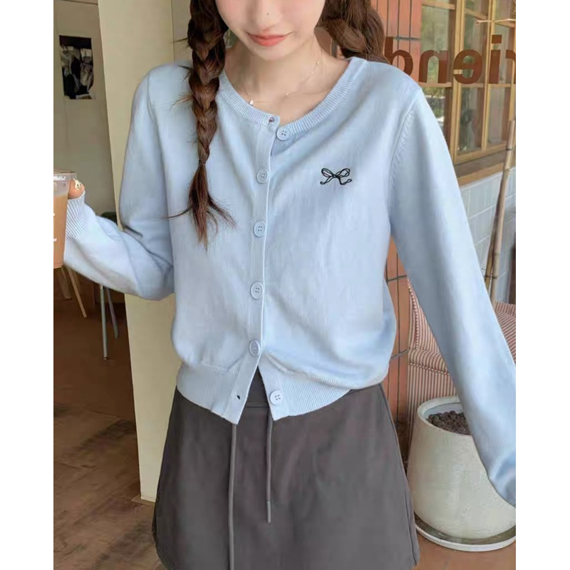 BY IRA (042)เสื้อคาร์ดิแกนไหมพรมแขนยาว กระดุมหน้า ปักโบว์แต่งหน้าอก สไตล์เกาหลีใส่คลุมสวยๆ