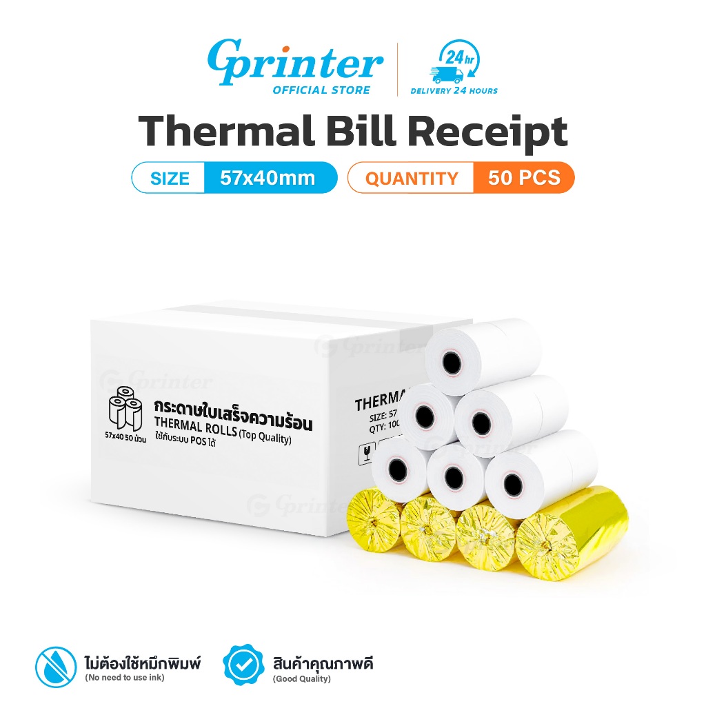 Gprinter กระดาษความร้อน 57x40 57x30 mm 50ม้วน กระดาษพิมพ์ใบเสร็จ Thermal Paper บิลใบเสร็จ