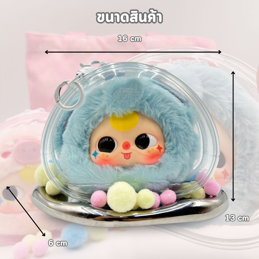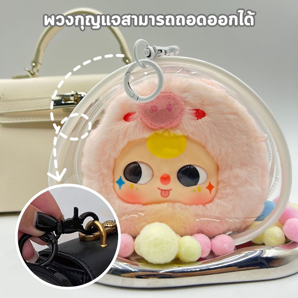 【พร้อมส่งจากไทย】กล่องเก็บตุ๊กตาการ์ตูน สีดํา ทรงกลม กันฝุ่น แบบพกพา พร้อมซิปใส สําหรับตกแต่ง baby three
