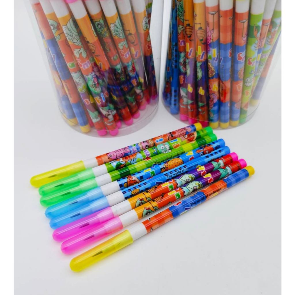 ✏️กระป๋อง 72 ด้าม✏️ ดินสอต่อไส้ ดินสอเปลี่ยนไส้HB ลายการ์ตูน หลากสีสัน น่าใช้ เครื่องเขียนสำนักงาน โรงเรียน