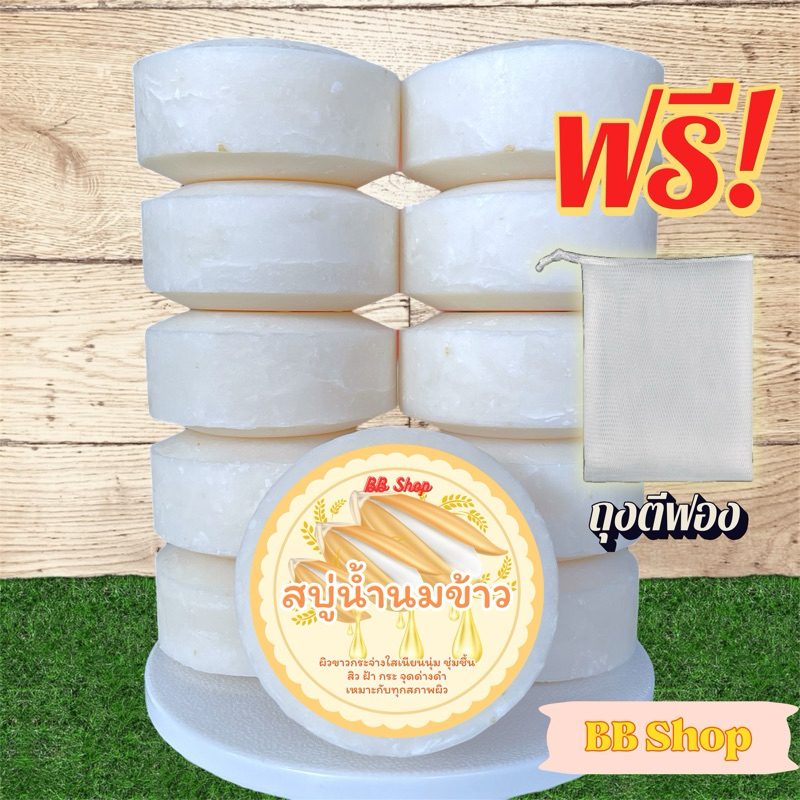 สบู่น้ำนมข้าว สบู่อัดก้อน สบู่สมุนไพร สบู่แพ็ค 10 ก้อน สบู่ขนาด 100 กรัม