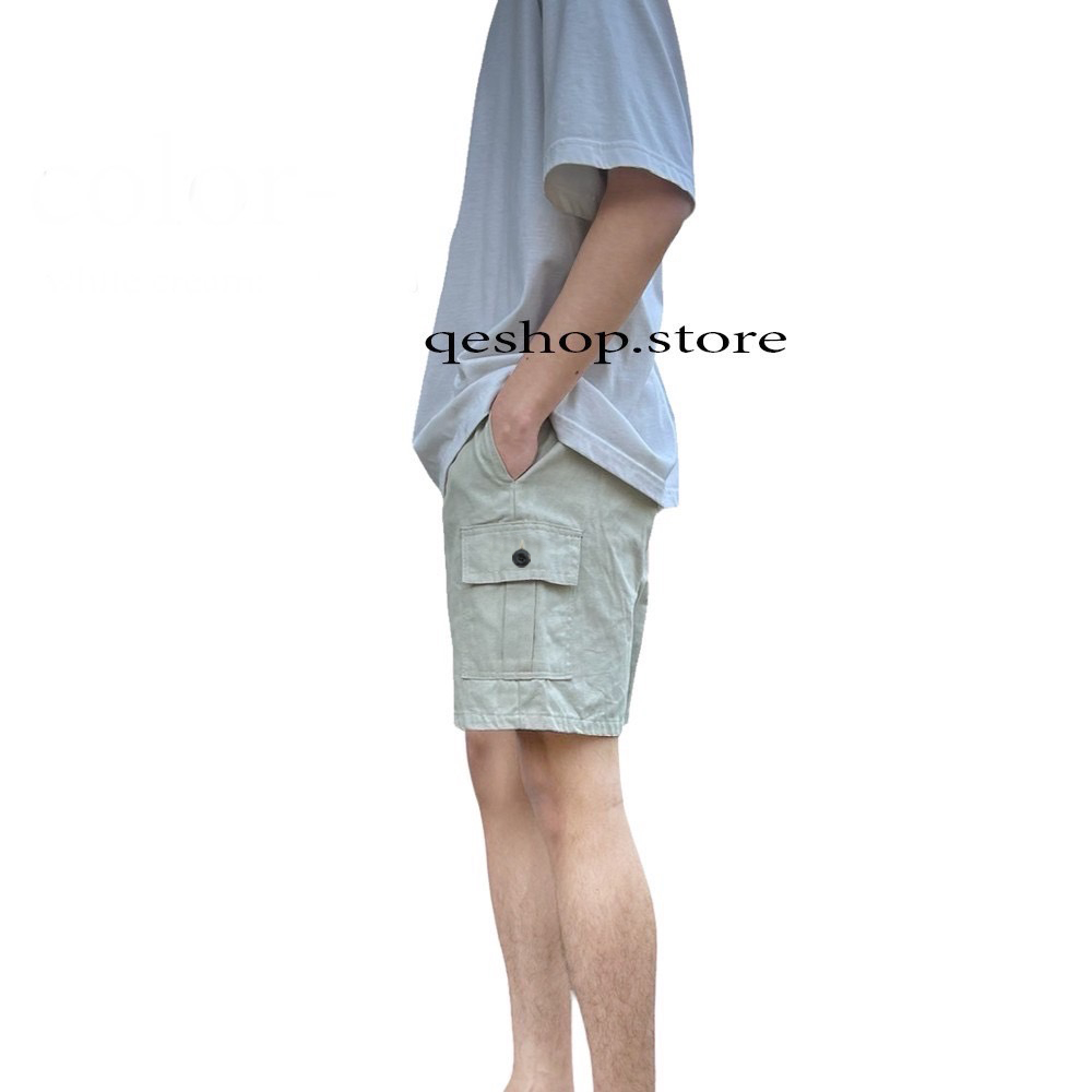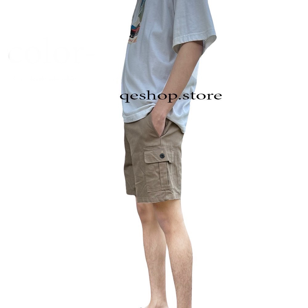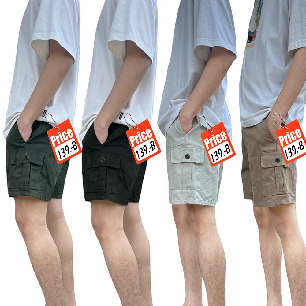 กางเกงขาสั้นผู้ชาย คาร์โก้ 4กระเป๋า มีกระดุม ทรงลุง สายแคมป์ กางเกงลำลอง ชายหญิงใส่ได้