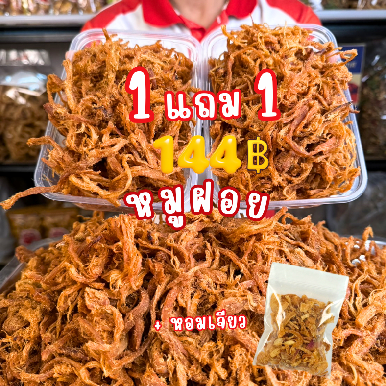 4seafood ‼ถูกที่สุด‼🐷หมูฝอย 1 แถม 1 🐷144 บาท หวานหอม นิ่ม ไม่แข็ง สะอาด ให้หอมเจียวทุกกล่อง กล่องละ 100 กรัม A-004