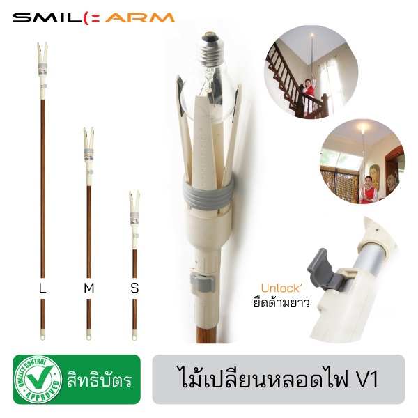 [ของแท้-มีสิทธิบัตร] SmileArm® ไม้เปลี่ยนหลอดไฟ ไม้จับหลอดไฟ ด้ามปรับความสูง กลไกวงแหวนปรับระดับ เปลี่ยนหลอดไฟ
