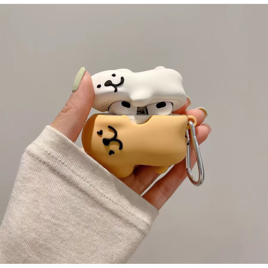 (เคส Airpods4) เคสลูกสุนัขน่ารักสําหรับ AirPods4(2024)1/2/3/Pro/Pro2 เคสซิลิโคนอ่อนนุ่มพร้อมคาราบิเนอร์