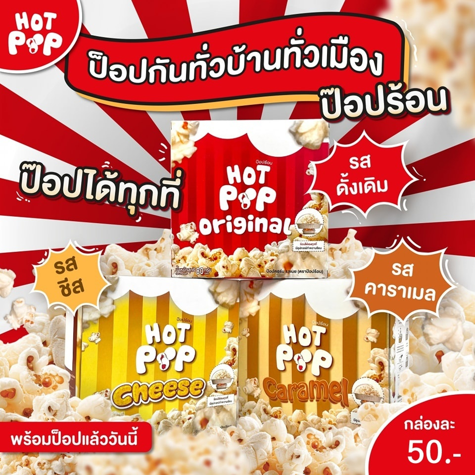 HOT POP ป๊อบคอร์น ป๊อปร้อน ป๊อบคอร์นพร้อมชุดเตาย่าง ร้อนได้เองได้โดยไม่ต้องใช้ไมโครเวฟ หยิบมาป๊อบแค่ 2 นาที ก็ได้ทานป๊อบคอร์นแบบร้อน ๆ ป๊อปได้เอง ป๊อปได้ทุกที่ แบบสนุกๆ ไม่ว่าจะเล่นเกม ดูหนัง อ่านหนังสือ แคมปิ้ง ที่ไหนๆ ก็ป๊อปเองได้ อร่อยจนหยุดไม่อยู่ - ไม่ต้องเข้าไมโครเวฟ ไม่ต้องใช้แก๊ส - เร