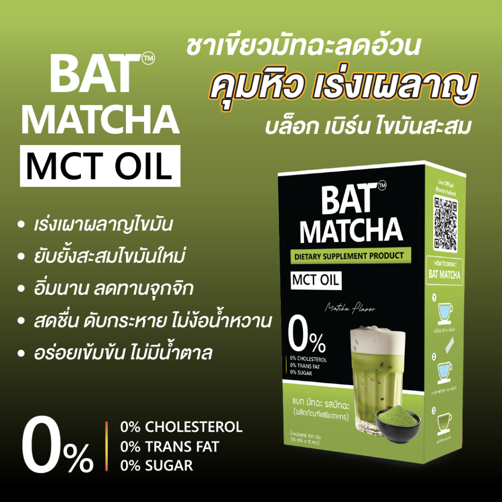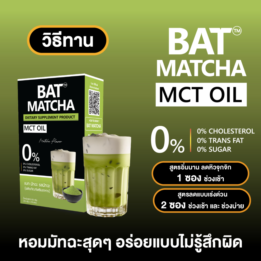 BAT™ MATCHA MCT Oil ชาเขียว แบท มัทฉะ อร่อย น้ำตาล 0% แคลต่ำ