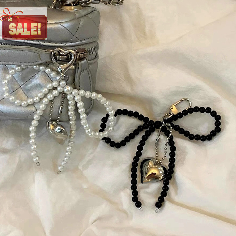 Bl Ins สไตล์ Bowknot ลูกปัดพวงกุญแจสามมิติเงินหัวใจโทรศัพท์จี้หูฟัง Charm กระเป๋าตกแต่งพวงกุญแจรถ A