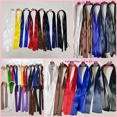 ริบบิ้นสำหรับผูกเป็นโบว์ ริบบิ้นผูกผมนักเรียน ขนาด 1 ซม ยาว 80 ซม ขายเป็นเส้น ริบบิ้นสำหรับผูกเป็นโบว์ ริบบิ้นผูกผมนักเรียน ขนาด 2.5 ซม ยาว 80 ซม ขายเป็นเส้น ริบบิ้นมันวาว 2 ด้าน อย่างดี
