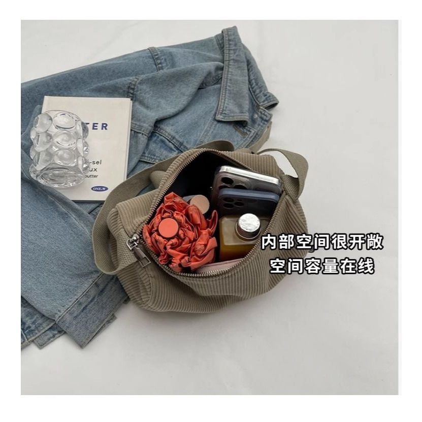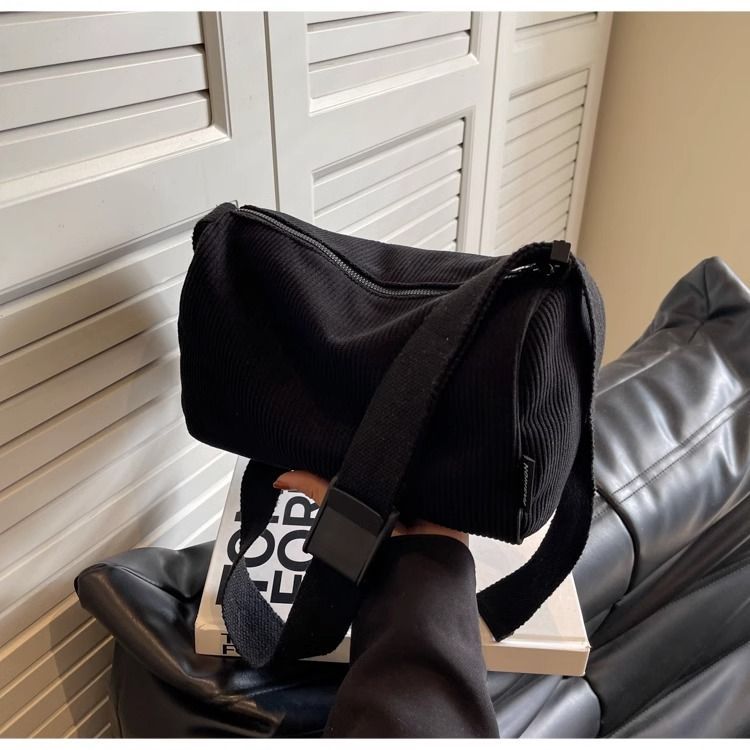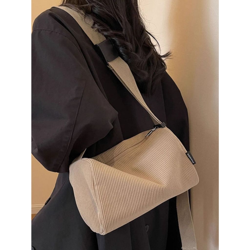 [กรุงเทพฯ จัดส่ง] กระเป๋าสะพายไหล่ ลายทางสูง กระเป๋าข้าม ผ้าลูกฟูก สีพื้น เรียบง่าย ขนาดใหญ่ เหมาะกับพนักงานสํานักงานและนั