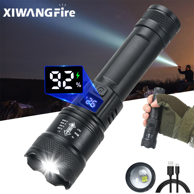 Xiwangfire e ไฟฉายแสดงแบตเตอรี ่ พร ้ อมโฟกัสตัวแปรและความสว ่ างสูงโคมไฟตั ้ งแคมป ์ กลางแจ ้ ง