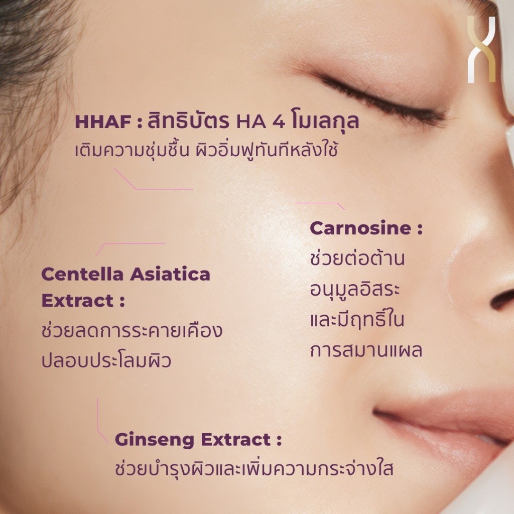 Biohyalux Lifting and Firming Mask 1 กล่อง มี 5 แผ่น มาส์กชีทสูตรช่วยยกกระชับผิว อุดมด้วย 4 ส่วนผสม Pro-xylane, Creatine, Scorpiotoxin และ Polypeptides สารสุดยอดแห่งการชะลอวัย รวมทั้งยังมี Centella Asiatica Extract ช่วยลดการระคายเคือง และปลอบประโลมผิว และยังมี Ginseng Extract ช่วยต่อต้านอนุมูลอิ