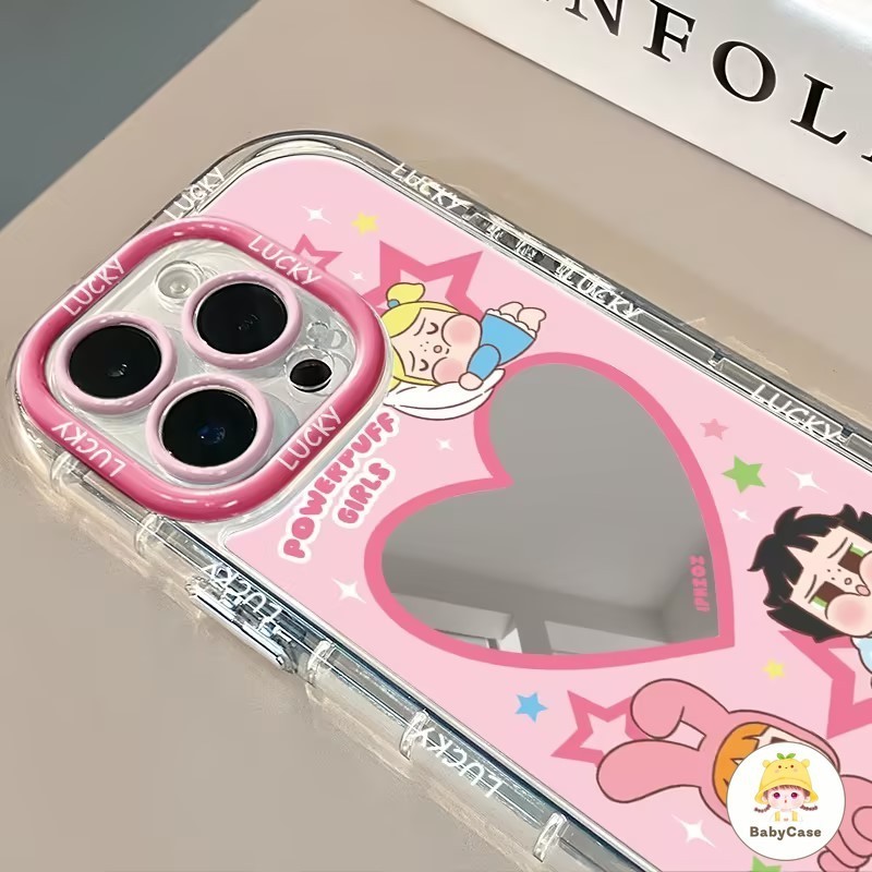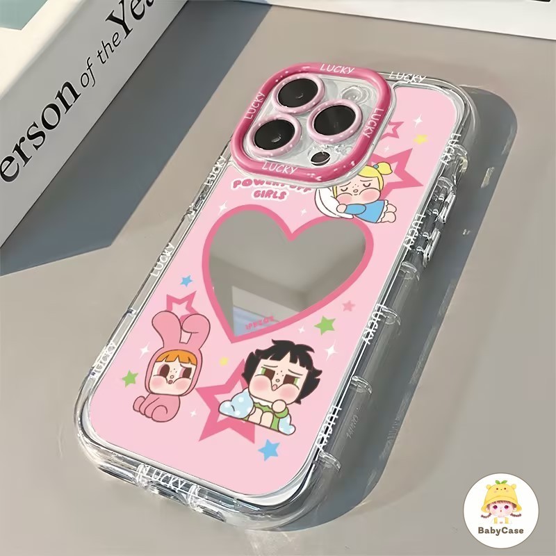 การ์ตูนน่ารักลายเดอะพาวเวอร์พัฟเกิร์ลส์ซีซ กระจกแต่งหน้า เคสไอโฟน 16 15 11 12 13 14 Pro Max 8 7 15 Plus XR X XS Max SE