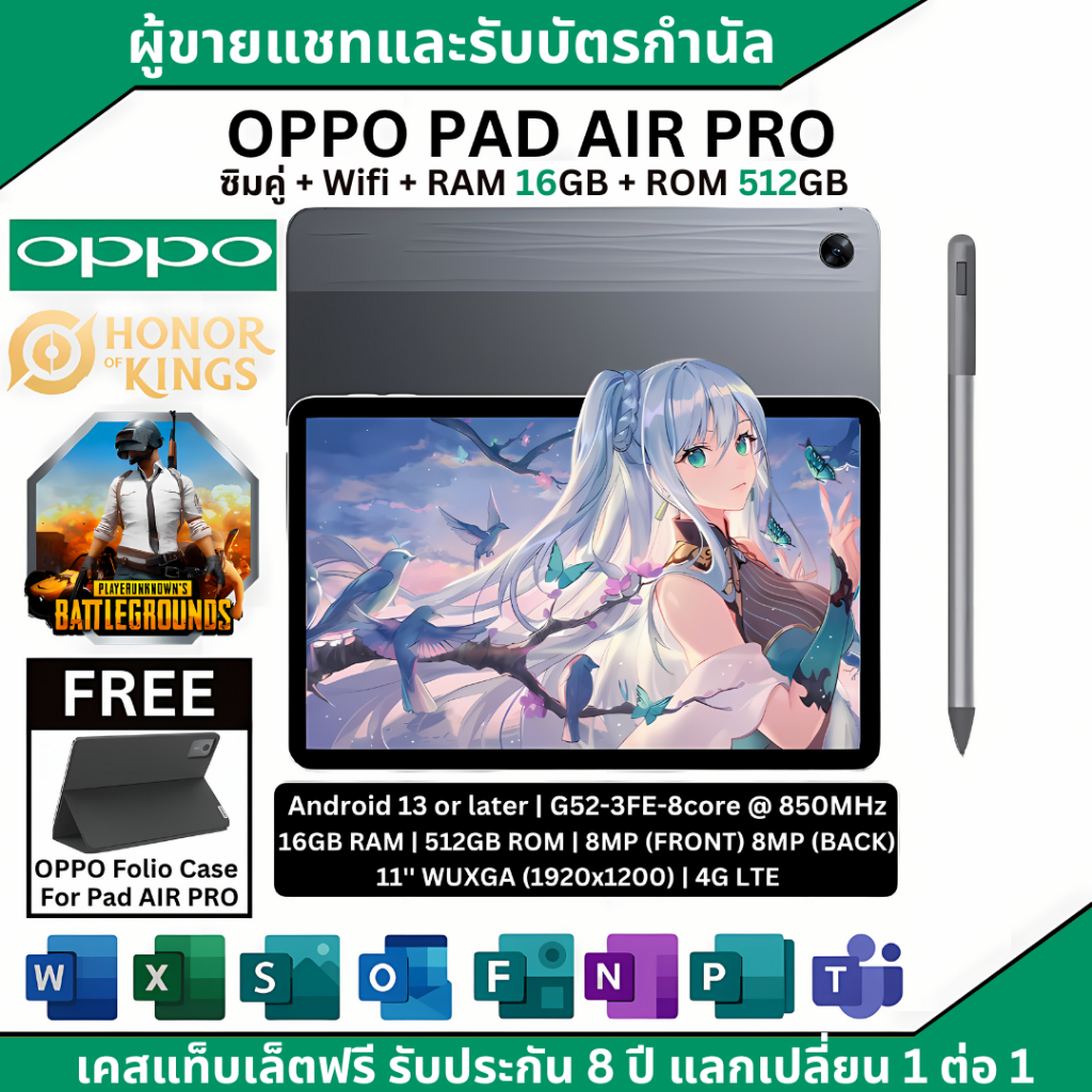 มีสินค้าพร้อม🎇2024 แบรนด์ใหม่ Opp0 Tablet Pad Air Pro | ระบบปฏิบัติการ Android 12 4G / 5G LTE โปรเซสเซอร์ Snapdragon 865