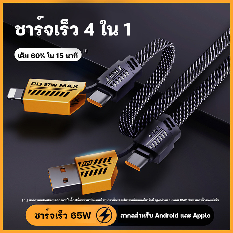สายชาร์จเร็ว 4IN1 รองรับการชาร์จเร็วสูงสุด 65W และเหมาะสำหรับ และเหมาะสำหรับ iP Type C