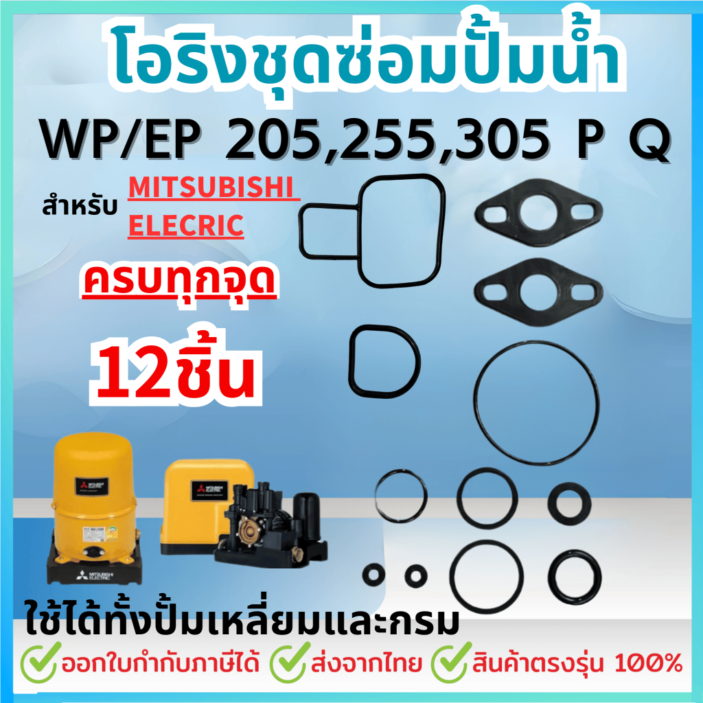 /พร้อมส่งจากไทย/ ชุดซ่อม อะไหล่ปั๊มน้ำมิตซูบิชิ ชุดปะเก็นโอริงซีลยาง ครบชุด 12 ชิ้น Mitsubishi WP/EP 205,255,305,355,405 P,Q,Q2,Q3,Q5,QS สำหรับมิตซูบิชิ รุ่น Mitsubishi WP/EP 85,105,155 P,Q,Q2,Q3,Q5,QS ออกใบกำกับภาษีได้ #อะไหล่ปั๊มน้ำ #โอริง #ซีลยาง #ปะเก็น #mitsubishi #205-305 #hitachi