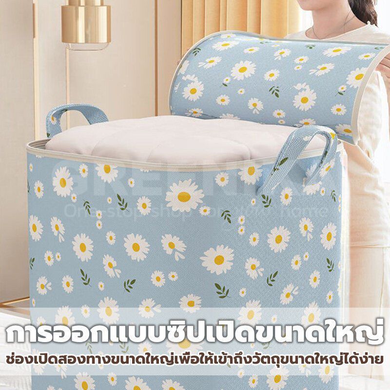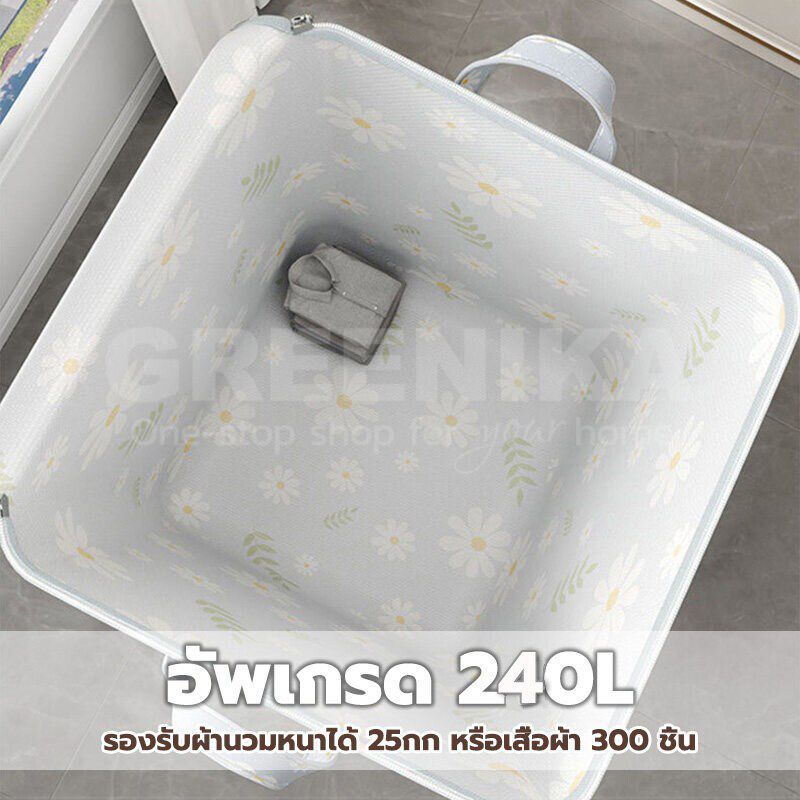 GREENIKA กระเป๋าใส่ผ้าใหญ่อเนกประสงค์ 240L ถุงเก็บเผ้าห่ม สื้อผ้า ผ้านวม ชุดชั้นใน มีซิปคู่ ผ้าหนา กันน้ำและกันฝุ่น กันเปื้อน พับได้