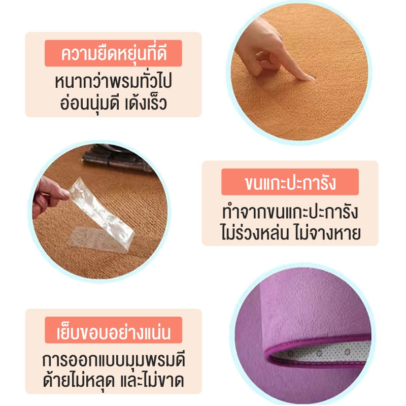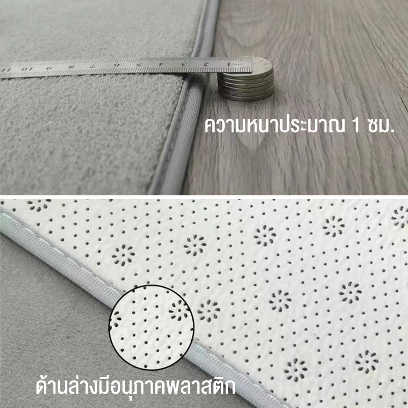 ... บไม่มีขน หนาประมาณ 0.5-0.7 ซม. การออกแบบพิเศษที่ด้านล่างของพรมช่วยป้องกันการลื่นไถลและช่วยให้พรมยึดติดกับพื้นได้ดี 💥 เหมาะสำหรับปูห้องรับแขก ห้องนั่งเล่น ห้องนอน ห้องทำงาน ห้องพระ หรือทุกที่ที่ต้องการเพิ่มความสวยงาม 💥 ในการใช้งานครั้งแรก ลูกค้าควรทำความสะอาดพรมก่อนใช้งาน เพราะทางโรงงานอาจจะติดลูกพรมบ้าง สามารถทำความสะอาดด้วยเครื่องดูดฝุ่นและล้างด้วยน้ำได้ 💓 มี 3 ขนาด 💥80ซม.*120ซม. 💥120cm*160cm 💥160ซม.*200ซม. ✔️แต่ละชุดอาจมีสีต่างกันในกรณีที่สีพรมแตกต่างจากภาพ หรือสีที่ลูกค้าได้จะสว่างหรือเข้มกว่าในรูปเพราะแสงนะคะ หากลูกค้าไม่สบายใจสามารถคุยกับทางร้านก่อนได้ค่ะ ทางร้านขออนุญาตไม่รับคืนสินค้าหลังส่งให้ลูกค้าแล้วแจ้งสีไม่สวย ✔️ลูกค้าที่ได้รับผิดแบบหรือผิดไซส์สามารถกดสมัครขอคืนเงินและคืนสินค้าได้