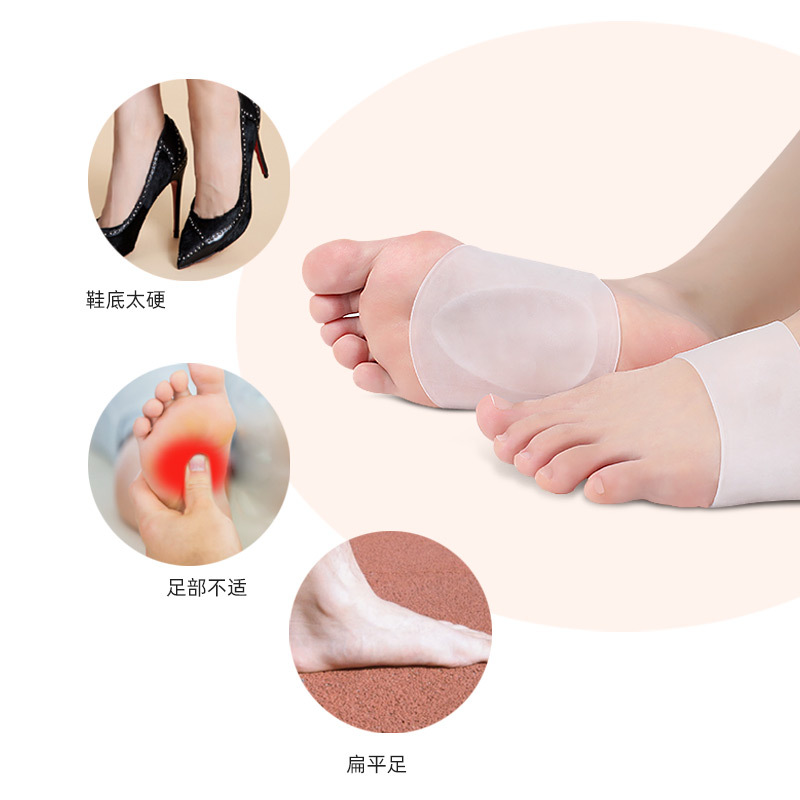 หนาแผ่นโค้งแผ่นเท้าแบนเท้าสนับสนุนการดูดซึมช็อกเท้าปกสูงโค้งเท้าแนวนอนโค้งแก้ไขแผ่นกีฬาผ้าพันแผลซิลิโคนครึ่งขนาดพื้นรองเท้า