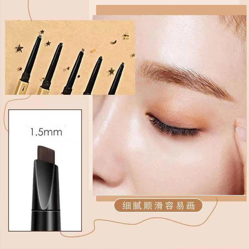 ... สีคมชัด กันน้ำ ติดทนยาวนานตลอดวัน เวลาเขียนไม่เป็นผงหลุดลงมาเลอะ ใช้งานง่าย แค่เพียงหมุน 2 in 1 แถมมีแปรงปัดคิ้วในตัวอีกด้านไม่ต้องเหลาเมื่อดินสอกุด