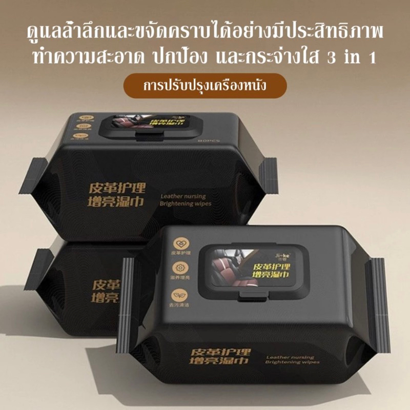 ทิชชู่เช็ดเบาะหนังรถยนต์ คอนโซลรถ ผ้าเช็ดเบาะรถ 80แผ่น ทิชชู่เปียกเช็ดพร้อมเคลือบเงา รองเท้าหนัง และโซฟา