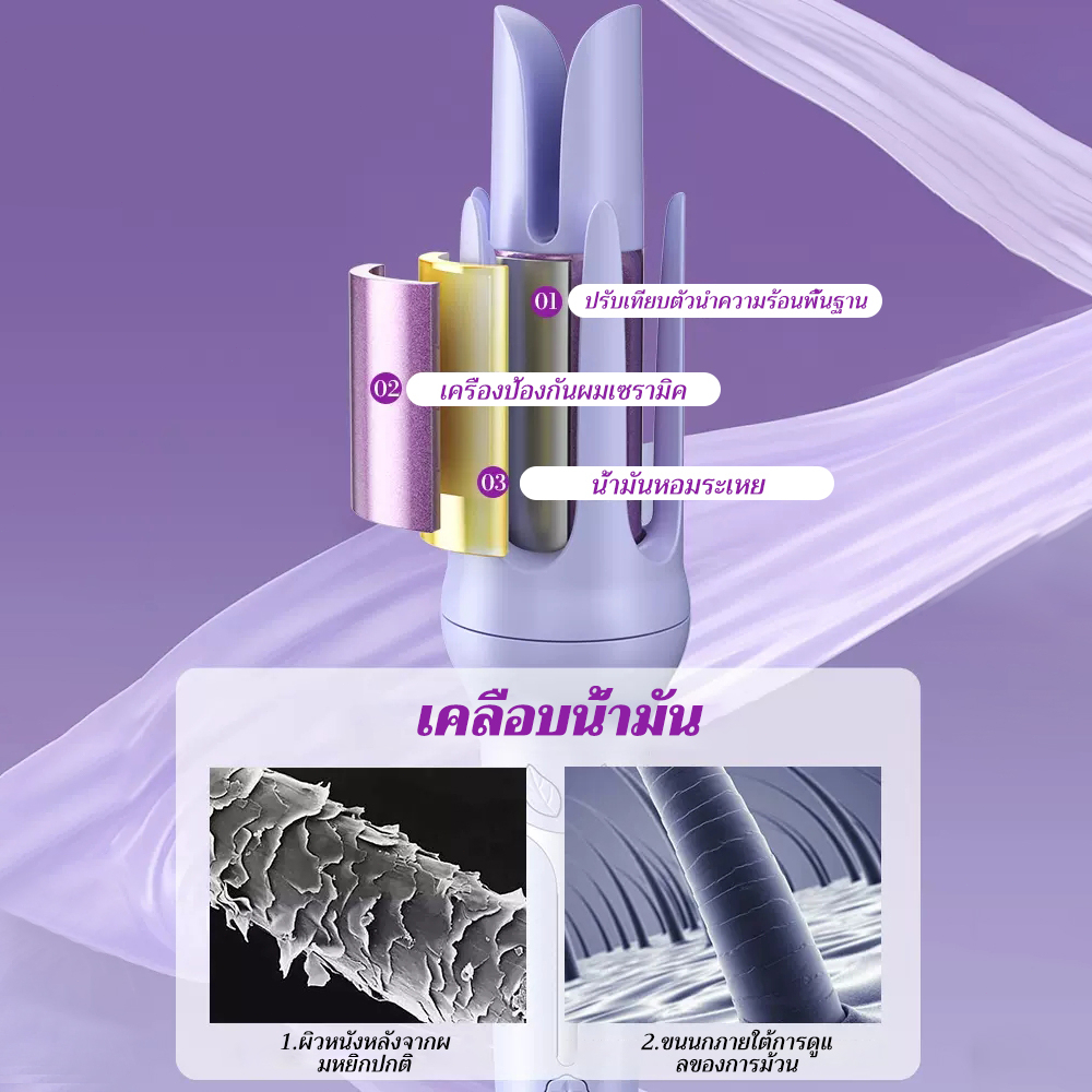 เครื่องม้วนผม 32mm ม้วนผมอัตโนมัติ 32mm เครื่องม้วนผมไฟฟ้า28mm โปรตีนพืช 2600W ไอออนิก ลอนสวยธรรมชาติ แกนม้วนผม ลอนสวย