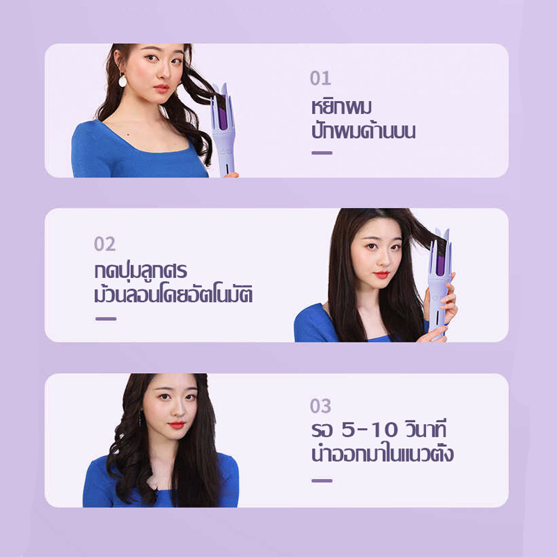 ... งม้วนผมรุ่นใหม่สามารถปรับอุณหภูมิได้ 4 ระดับ • อุณหภูมิเริ่มต้น 170 ℃ ช่วงที่ปรับได้: 170-230 ℃ • สามารถทำได้ทั้งลอนม้วนเข้าและบ้วนออกเพียงแค่กดปุ่ม • ตัวเครื่องแข็งแรงทนทานร้อนเร็วภายนอกสามารถจับได้ไม่ร้อนมือใหม่ก็ใช้ได้ง่ายๆสภาพผมแบบไหนก็สามารถใช้ได้ • มีระบบความปลอดภัยเพิ่มเทคโนโลยีตัดไฟอัตโนมัติ เมื่อคุณลืมปิดเครื่องระบบจะปิดเองอัตโนมัติหลังจากไม่ได้ใช้งาน 30 นาที 【พารามิเตอร์ผลิตภัณฑ์】 หมวดหมู่สินค้า: เครื่องม้วนผมอัตโนมัติ ประเภทผมที่ใช้ได้: ผมแห้งและผมเปียก วัสดุตัวนำความร้อน: เซรามิคทัวร์มาลีน การปรับการควบคุมอุณหภูมิ: 4 ไฟล์ (170-230 ℃) ขนาดเพลา: 32mm กำลังไฟ: 42W ความถี่สูงสุด: 50Hz แรงดันไฟฟ้า: 220V การปิดระบบอัจฉริยะ: 30 นาที 【รายการบรรจุภัณฑ์】 1 * เตารีดดัดผม 1 *หวี 2* กิ๊บติดผม 1 * คำแนะนำ 【คำแนะนำในการใช้งาน】 1. กดปุ่มเปิด/ปิดค้างไว้สองวินาทีเพื่อเปิด อุณหภูมิเริ่มต้นคือ 170 °C คุณสามารถกดปุ่มเปิดปิดเพื่อปรับอุณหภูมิ กดปุ่มเปิดปิดค้างไว้สองวินาทีเพื่อปิด 2. 170 ℃ เหมาะสำหรับผมนุ่มทั่วไป 190 ℃ เหมาะสำหรับผมทั่วไป 210 ℃ เหมาะสำหรับผมหยาบและแข็ง 230 ℃ เหมาะสำหรับการจัดแต่งทรงผมแบบมืออาชีพ 3. สำหรับการใช้งานครั้งแรก ขอแนะนำให้ลองจากอุณหภูมิต่ำถึงอุณหภูมิสูง 【เงื่อนไขการรับประกัน】 1.สินค้ามีการรับประกัน 1 ปีจากทางบริษัทฯ กรณีสินค้ามีปัญหาจากการผลิตใช้งานไม่ได้ตั้งแต่ครั้งแรกที่ได้รับสินค้า โดยลูกค้าจะต้องแจ้งภายใน 15 วัน นับจากวันที่ได้รับสินค้า หลังจาก 15 วัน ลูกค้าต้องเป็นผู้รับผิดชอบค่าขนส่งทั้งไปและกลับเอง 2. ทางร้านไม่รับประกันสินค้าที่เกิดจากความเสียหาย ดังนี้ สินค้าเกิดจากอุบัติเหตุ การใช้งานที่ผิดวิธี เก็บรักษาไม่ถูกต้อง สินค้ามีรอยงัดเเงะเเก้ไขสินค้า รายสนิม มีสภาพผิดรูปไปจากเดิม รอยไหม้ แตก หัก บิ่น งอ ยุบ เบี้ยว คราบสกปรก หรืออุปกรณ์บางส่วนหลุดหาย ถือว่าสิ้นสุดการรับประกันทันที 4. กรณีมีการเปลี่ยนสินค้าใหม่ บริษัทฯจะรับประกันสินค้าชิ้นต่อไปตามระยะเวลารับประกันที่เหลืออยู่ นับจากวันที่รับประกันสินค้าครั้งแรก 5. หลักฐานที่ต้องใช้ในการแจ้งเคลมสินค้า ได้แก่ หมายเลขคำสั่งซื้อ