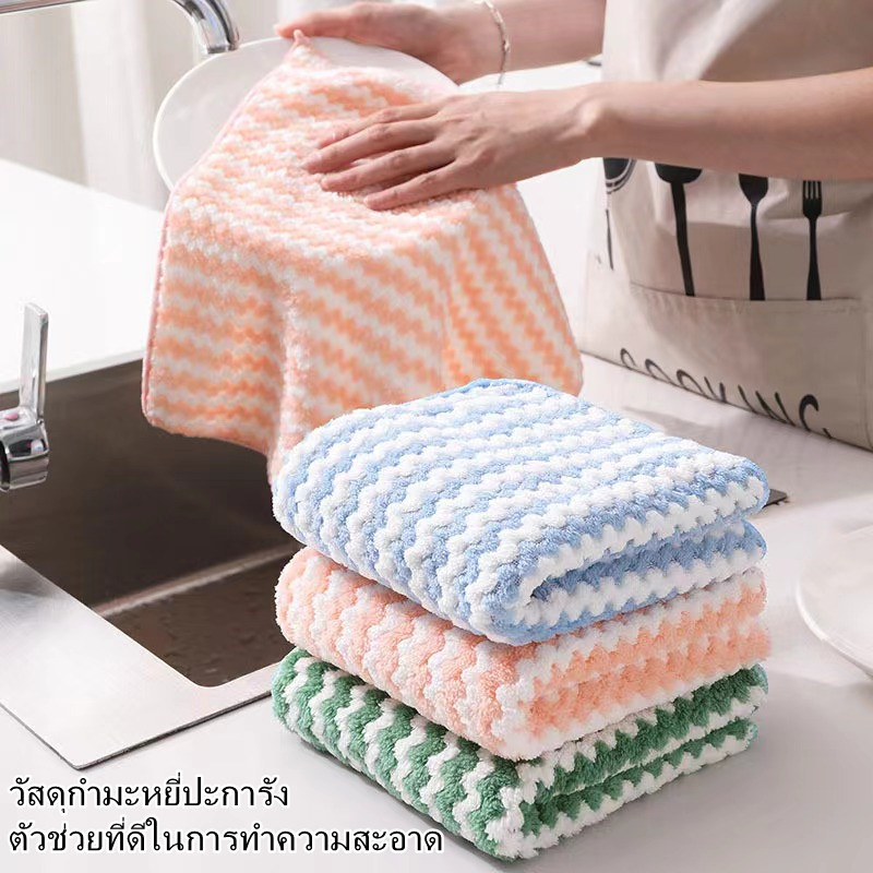 ผ้าอเนกประสงค์ เช็ดโต๊ะ ขี้ริ้ว เช็ดจาน ทำความสะอาด ซึมซับน้ำได้ดี: ขนาด: 25*25ซม วัสดุ: กำมะหยี่ปะการัง คุณสมบัติ: -ผ้าเนื้อนุ่มจะไม่ทำลายพื้นผิวของสิ่งที่เราชื่นชอบ เส้นผมไม่หลุดร่วงง่าย ทนความร้อน เช็ดสิ่งสกปรกออกอย่างหมดจด และเช็ดคราบไขมันที่ติดจานได้ดี -สามารถเช็ดทำความสะอาดทุกอย่างในบ้าน