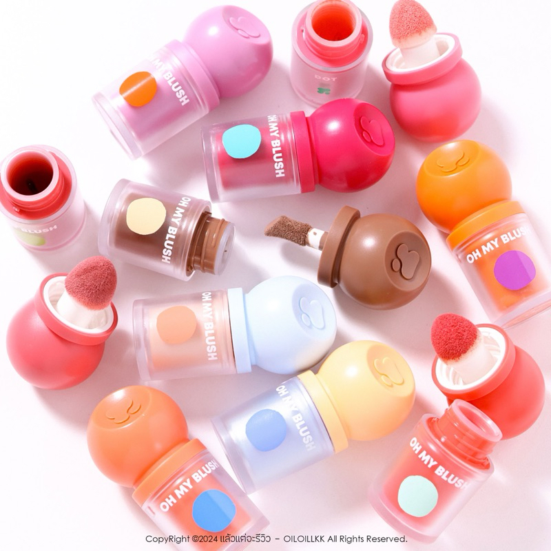 New in #ohmyblushdot #บลัชหัวโต แค่ DOT แล้วเบลน DOT on your cheeks, with the cutest OH MY BLUSH DOT บลัชออนหัวโตสูตรน้ำที่มาพร้อมแพคเกจสุดคิ้วท์ สีสันคัลเลอร์ฟลู ติดทนถึง 12 ชั่วโมงกันน้ำกันเหงื่อ ไม่เป็นคราบระหว่างวัน หัวแปรงออกแบบมาให้ง่ายต่อการใช้ ทั้งหัวฟองน้ำและหัวแปรงตัด เนื้อนุ่มลื่